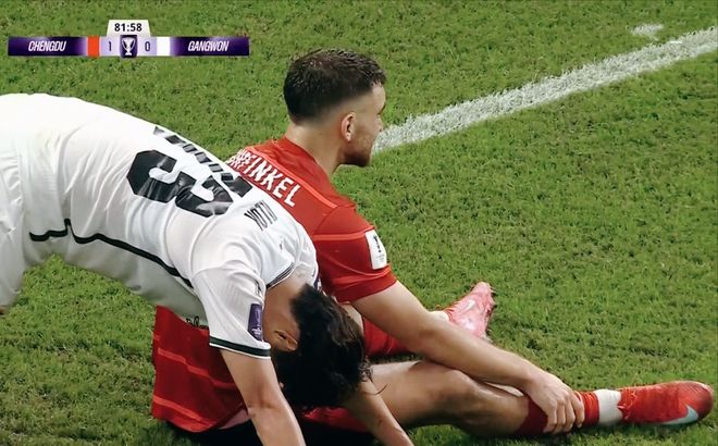 第35分鐘,被動的成都蓉城意外取得領先!羅慕洛將球罰到禁區(qū),楊帥頭球擺渡,跟上的周定洋凌空抽射破門,1:0!江原FC隨即進一步在進攻端發(fā)起沖擊,最終半場比賽結束,成都蓉城利用一次角球的機會,暫時領先于對手。